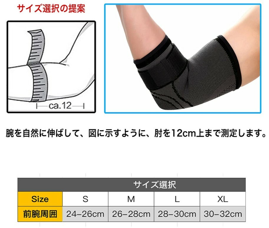 この商品は 肘 サポーター ひじ用 サポーター スポーツ用 通気性 伸縮性 保温性 滑り止め 野球ゴルフなどスポーツに 左右兼用 男女兼用 ポイント 通気性抜群で手洗いも可能! ひじ用サポーター 男女兼用 【製品サイズ】周径は肘上12cm付近を計測してください。