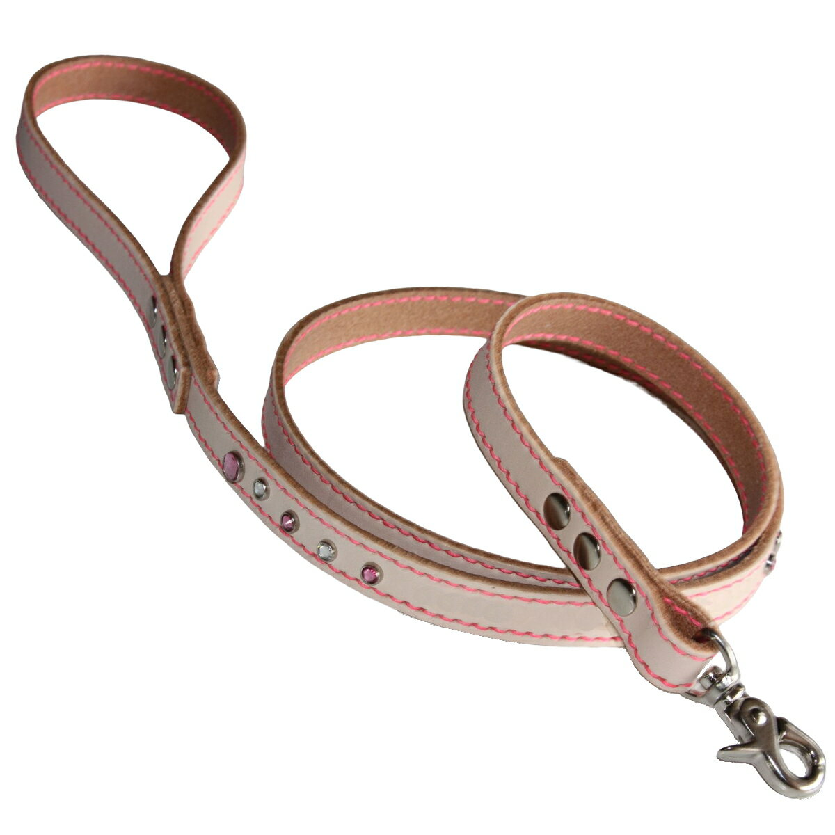 手縫いでステッチを施しクリスタルストーンを贅沢に使用したラグジュアリーな小〜中型犬用リード♪