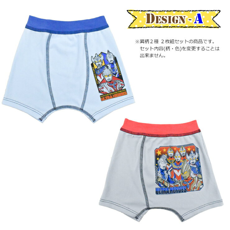 特徴 ウルトラマンヒーローズのキャラクターボクサーブリーフパンツ デザインの違う2枚セットです A柄*2609190 *前とじボクサータイプ *太めウエストテープ *裾部分ダブルステッチ *便利なお名前欄あり♪