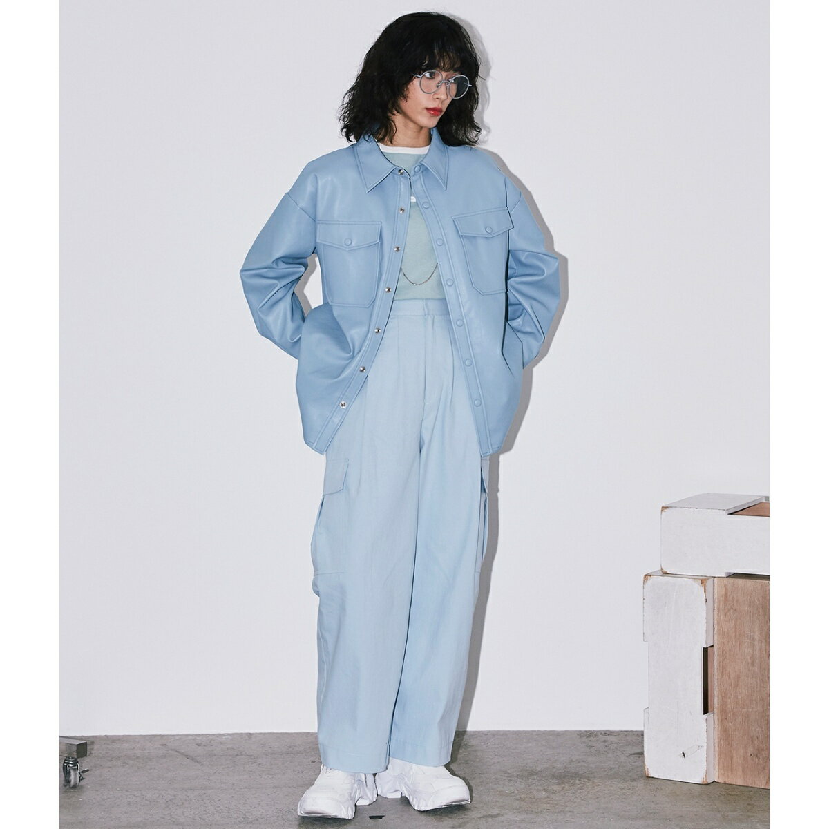 [型番:ZPL61020]秋シーズンから人気のエコレザーシャツジャケットがマット素材に変更して新色アイボリー・ブルー・ブラックで再登場!【Material】マットな表面感と柔らかくも程よいハリが特徴のエコレザー生地を使用。