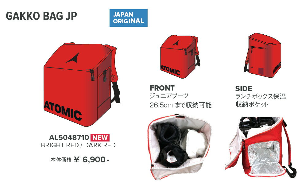ATOMIC【GAKKO BAG JP Red/Rio Red】アトミック ガッコウバッグ 学校バッグ リュックサック バックパック 合宿 スキーブーツ収納可能 ブーツバッグ ジュニア キッズ 子供用 スキー教室 スキー授業 AL5048710