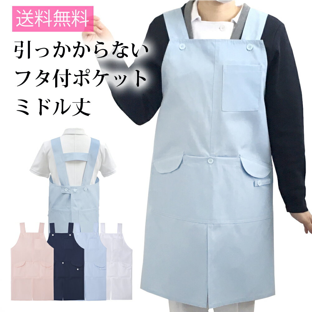 ナース エプロン ミドル丈 予防衣 大きいポケット しゃがんでも床にすそがつかない シンプルデザイン ワンピース 保育士 看護師 医療 介護士 病院 ナースコム 汚れ防止 ポケット付 配膳 即日発送 あす楽
