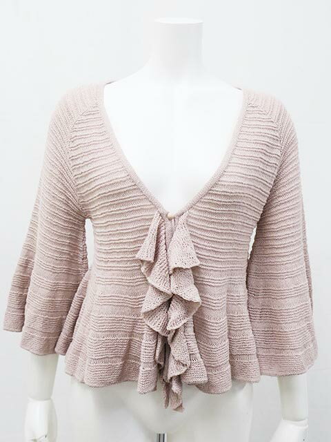 【中古】TO BE CHIC トゥービーシック トップス カーディガン レディース かぎ針 くすみピンク フレア・スリーブ サマーニット 9号