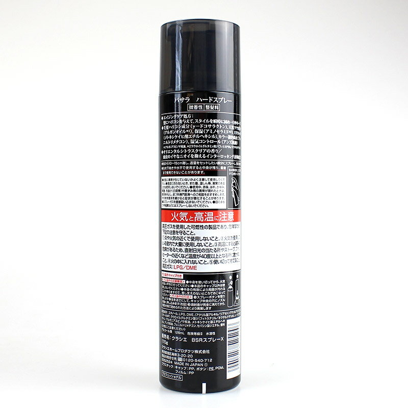 内容量 170g 配合成分 水、エタノール、LPG、DME、(アクリル酸アルキル/ジアセトンアクリルアミド)コポリマーAMP、アウロイルグルタミン酸ジ(フィトステリル/オクチルドデシル)、y-ドコサラクトン、アルガニアスピノサ核油、メトキシケイヒ酸エチルヘキシル、アンズ核油、フェニルトリメチコン、セバシン酸ジエチル、香料 広告文責 株式会社リライフコーポレーション tel:0595-44-6127 メーカー クラシエ 区分 化粧品 / 日本製スタイルをしっかりキープするハードスプレー! BASARAスタイリングライン - 大人の男の髪悩みをスタイリングで解決! 細かな霧で全体のスタイルをしっかりキープするスタイリングスプレーです。