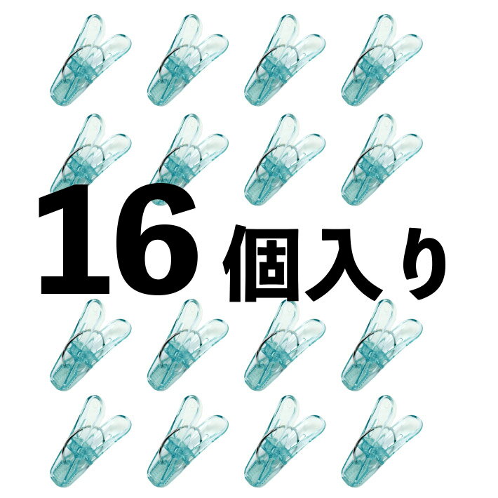 洗濯ピンチ 強力 洗濯バサミ 透明 頑丈 丈夫 干す 洗濯ばさみ おしゃれ ポリカーボネート 強化ピンチ16P 8-23 つかみやすい ハンガー コンパクト タオル干し 干す 水色 クリアカラー ピンチ