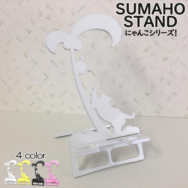 スマホスタンド かわいい おしゃれ 折りたたみ ベッド 猫 送料無料 日本製 可愛い 贈り物 ギフト 誕生日 お祝い ネコ カニ 立ち猫 ヤシの木(セパレートタイプ)が スマートフォン アイフォン を支える スタンド 鉄製 コンパクト 安定感があり