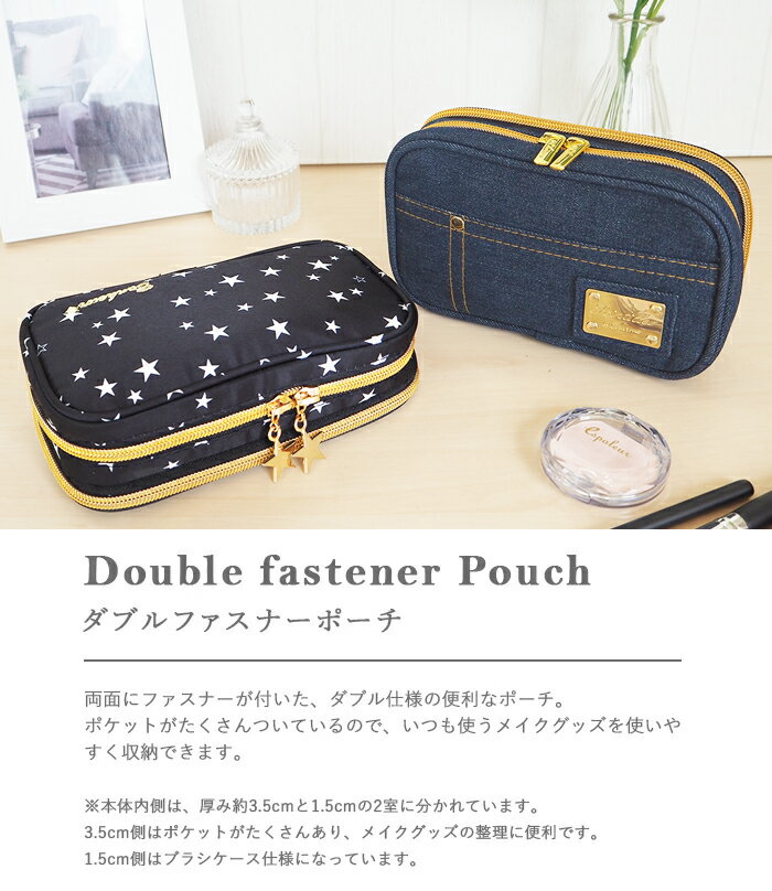 おすすめポイント ■ダブルファスナーポーチ 両面にファスナーが付いた、ダブル仕様のメイクポーチ。