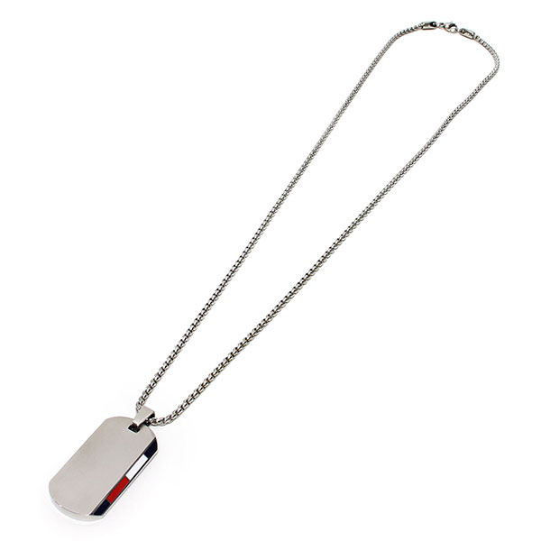 ▼ITEM DATA ブランド TOMMY HILFIGER(アメリカ) 性別 メンズ 素材 ステンレス/エナメル サイズ(約cm) (約cm)トップ:H 3.8cm W 2.0cm 厚み 0.3cm チェーン長さ:約60cm ※実寸サイズは若干の誤差がございます。