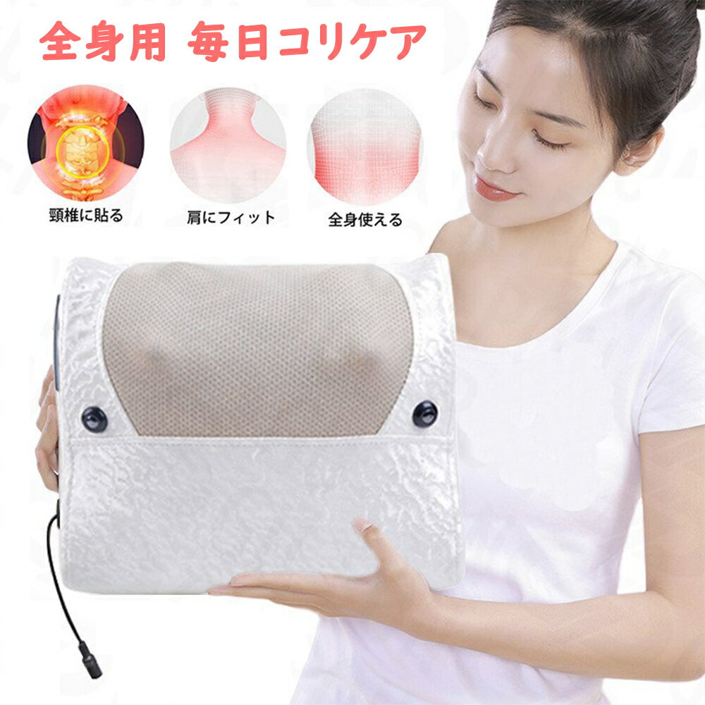 マッサージ枕 マッサージクッション 全身マッサージ機 腰 首 肩 首マッサージャー 寝ながらマッサージ器 ヒーター付き 3Dマッサージ器 16つ指圧風もみ玉 強さの調節できる ヒーター付き 正転/反転可能 こり解消 女性 男性 誕生日 職場用 家庭用 出張用