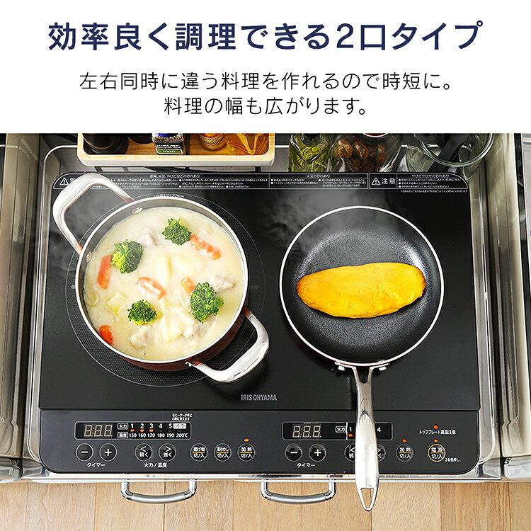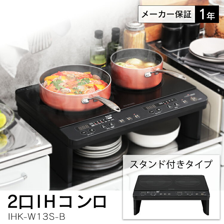 IHコンロ IH アイリスオーヤマ 卓上 クッキングヒーター IHクッキングヒーター 2口 卓上IH IHコンロ 2口 脚付 ブラック アイリスオーヤマ 送料無料 ふたくち 二口 2口調理 キッチン 台所 調理 料理 IHK-W13S-B【あす楽】